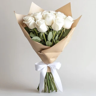 Подарите своим близким частичку весны и нежности с нашим уникальным букетом белых роз, завернутых в стильную крафтовую упаковку. Эти изысканные цветы символизируют чистоту и искренность, и станут прекрасным дополнением к любому празднику или важному событию. Вы можете выбрать количество роз — от 9 до 25 штук, в зависимости от вашего желания и повода.